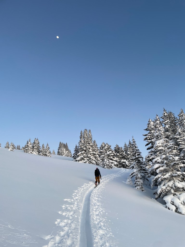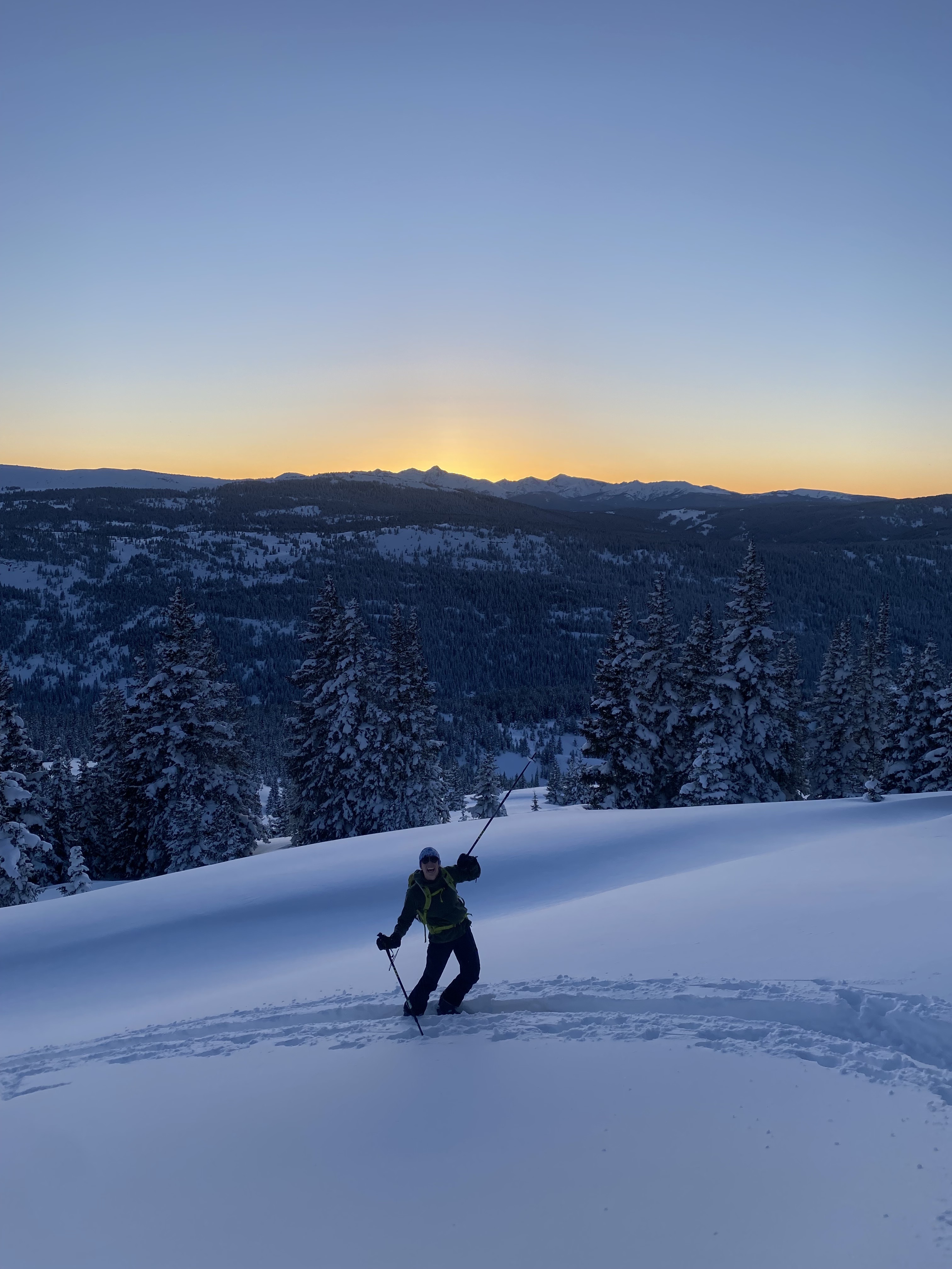 We hadn’t really expected or planned for an epic sunset ski, so the energy was high as we continued up. A whole lot of hoops and hollers!